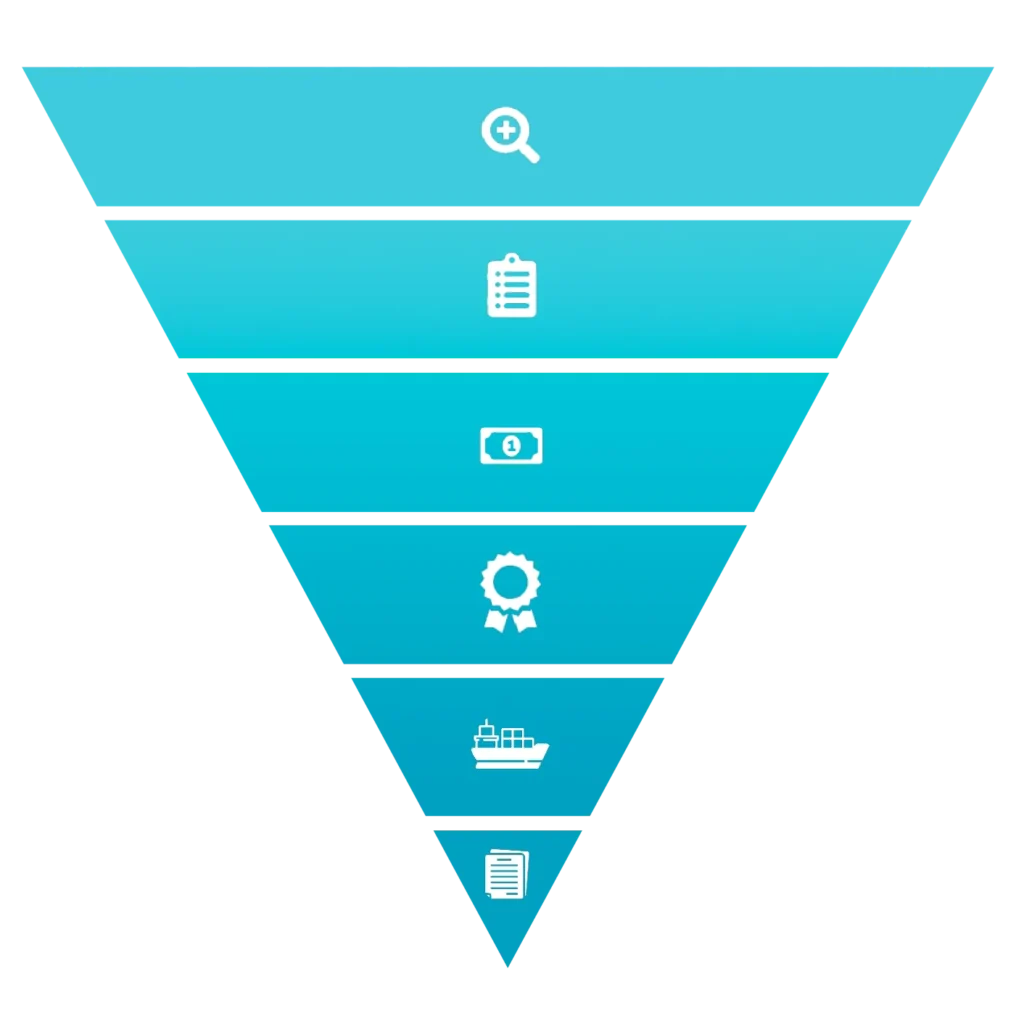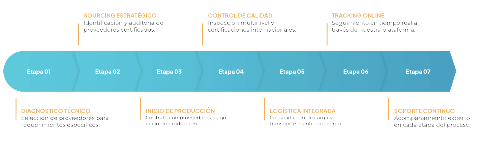 Desde la búsqueda de fábricas hasta la entrega final en el puerto de destino.